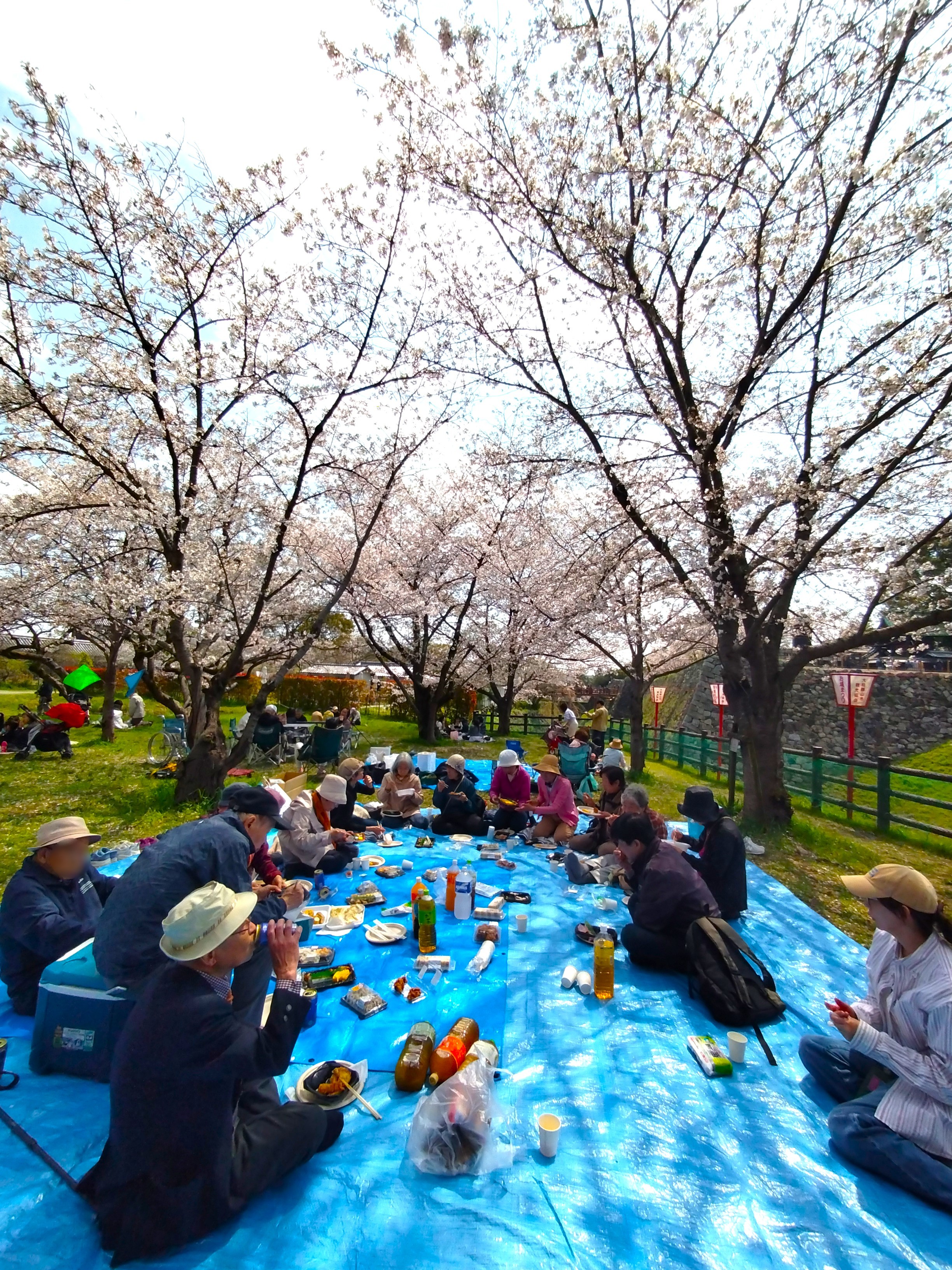 天候が心配されていましたが、太陽も顔を出すほどのお天気に恵まれ、満開の桜をゆっくりと見学することができ、桜の見学後は、桜の木の下で全員で輪になって食事をとり、和やかな雰囲気の中で交流を深めることができました。